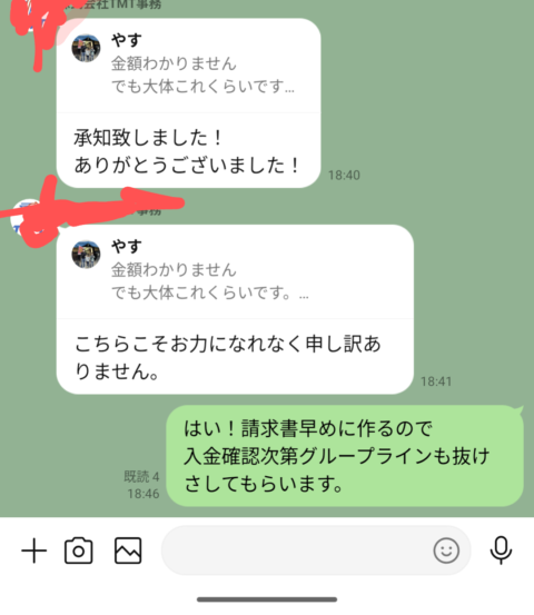 そしてLINEが来ました金額確定しましたと!